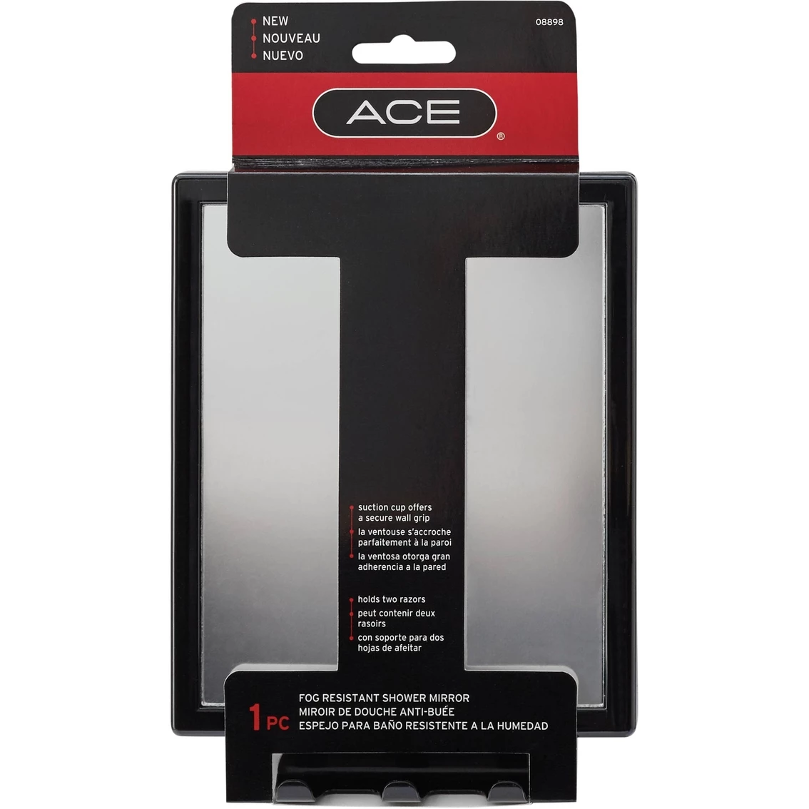 Get a closer shave with the Ace Fog Resistant Mirror. Made for the shower, this mirror doesn’t fog over so you can always see your reflection. The suction cup offers a secure wall grip and the bottom holds two razors for convenience. This fog resistant mirror is the perfect tool for grooming in the shower. Model: 1954984.