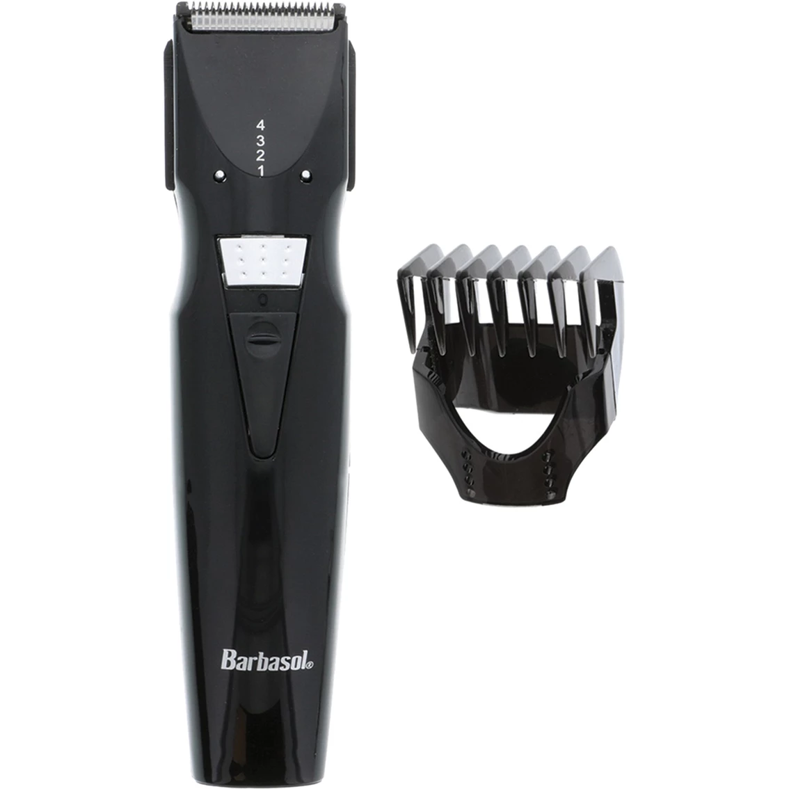 The Barbasol Men’s Battery Operated Beard Trimmer with stainless steel blades features a built-in, adjustable position guide with 4 settings with an easy click for achieving different lengths. The washable heads can be run under water for easy cleaning. This beard trimmer is battery operated and requires 2 AAA batteries (sold separately).