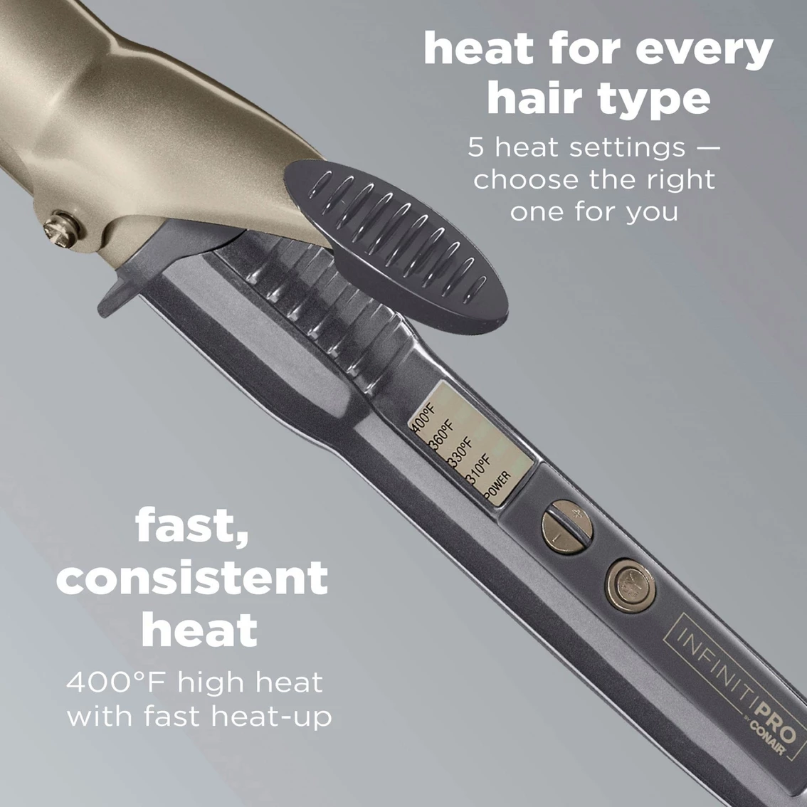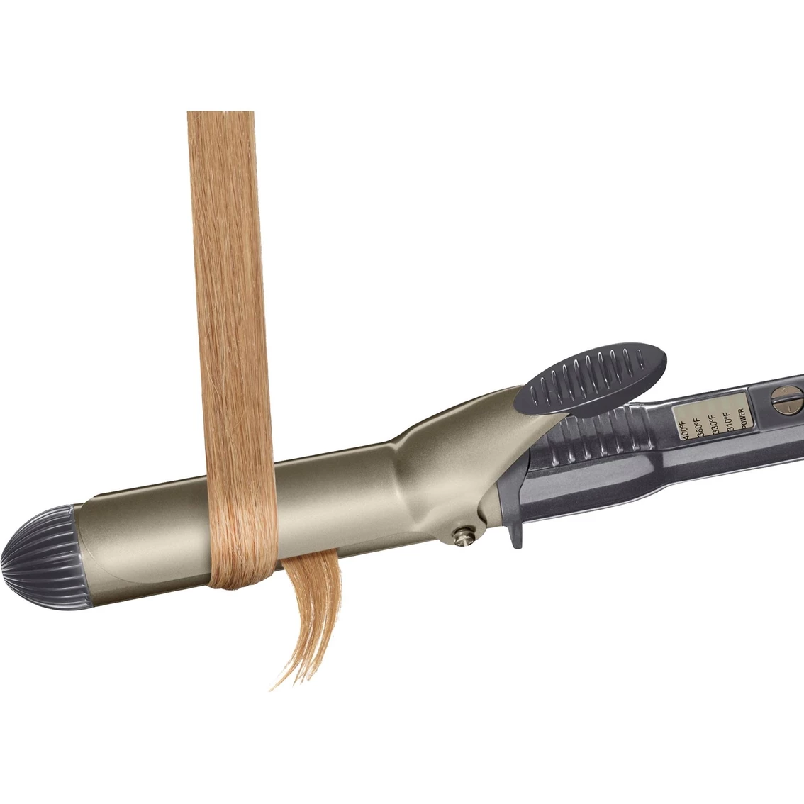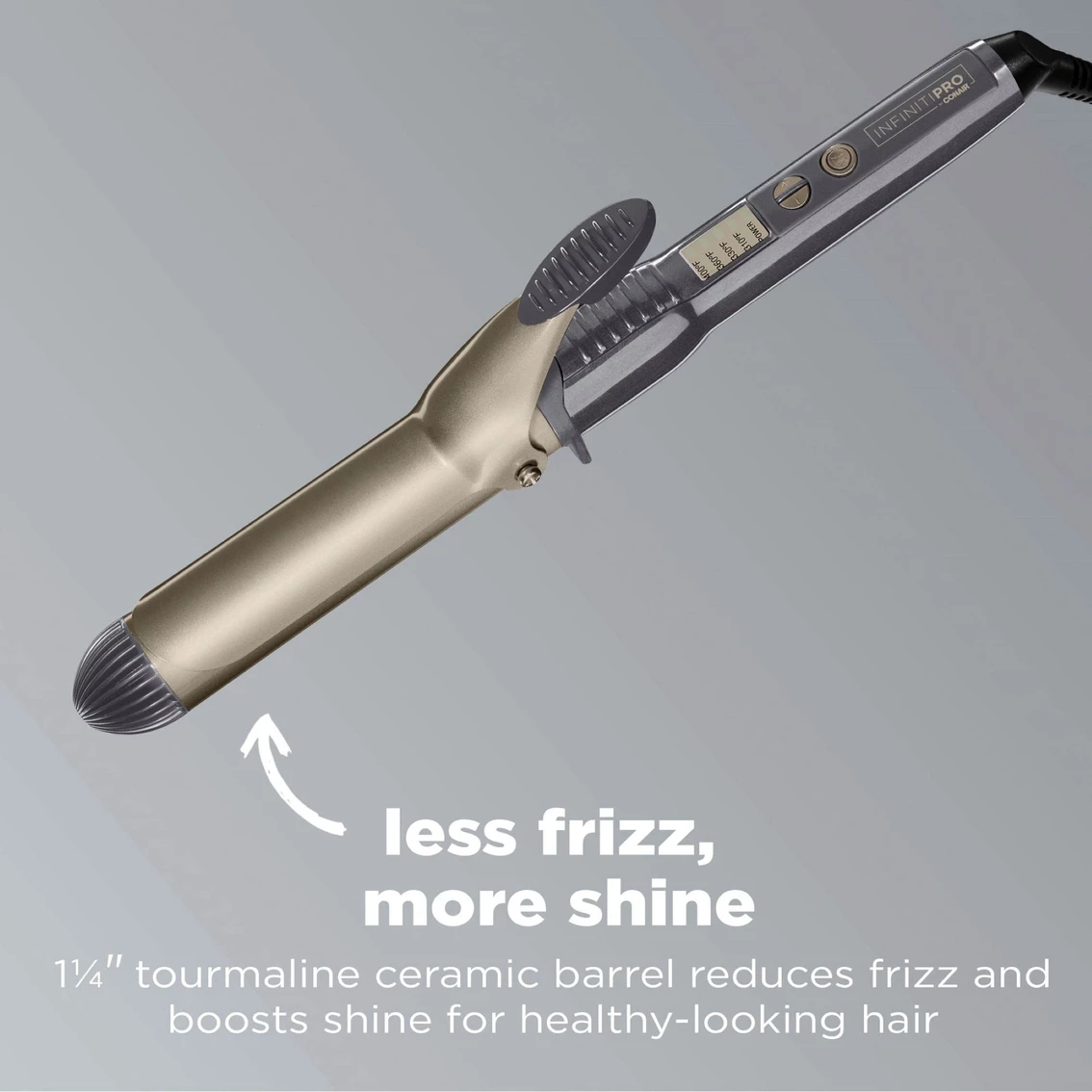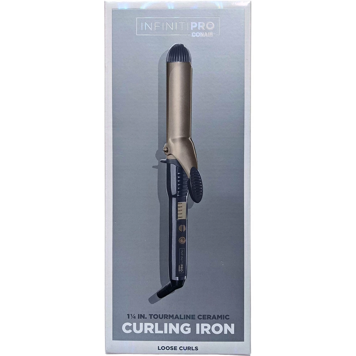 Get beautiful, shiny curls with the InfinitiPRO 1.25 in. Nano Tourmaline Ceramic Curling Iron from Conair. The technology fuses micro particles of tourmaline ceramic and silver to emit natural frizz-reducing ions for long-lasting curls and waves. Model: CD108NN.