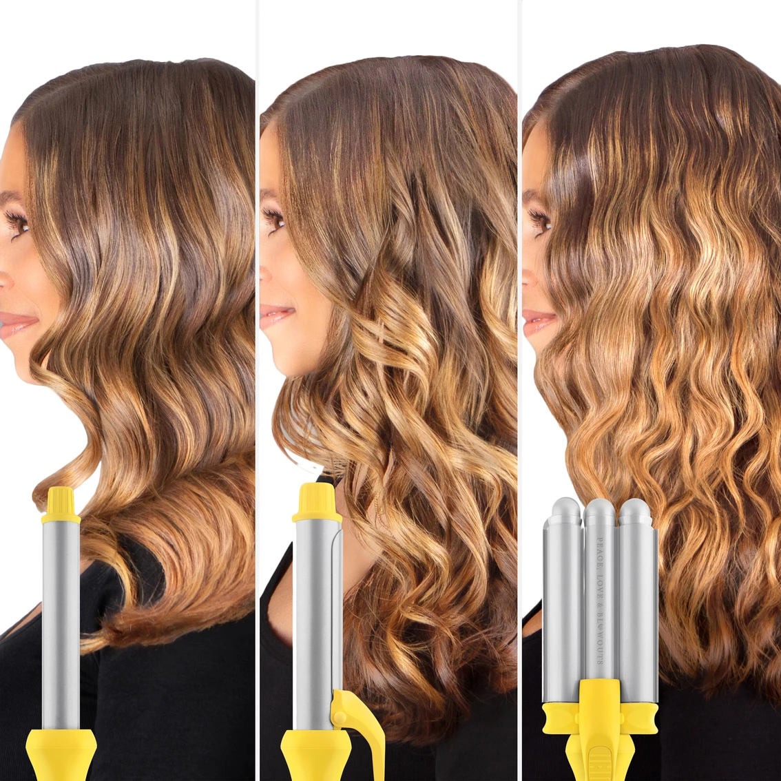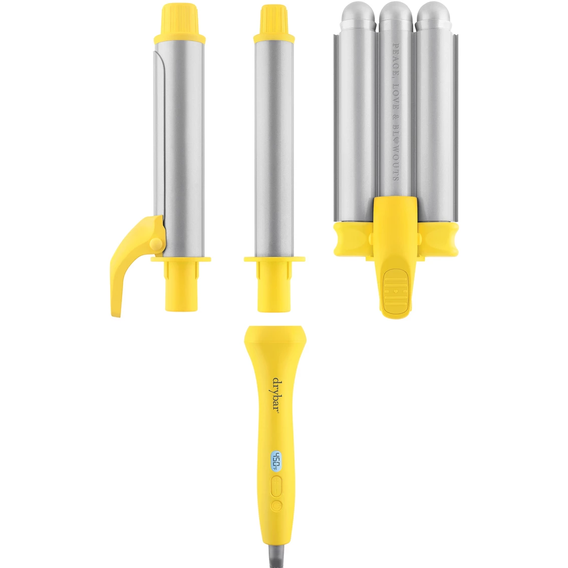 This modular styling tool from Drybar features three interchangeable attachments which snap easily into the handle to create a variety of styles. Attachments included: 1-in. Wand: Defined Waves 1.25-in. Curling Iron: Classic Curls Waver: Natural and Beachy Waves.