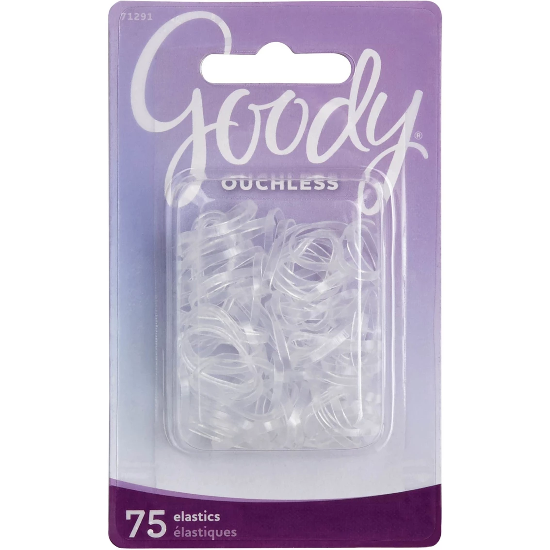 These clear, no-metal hair tie elastics from Goody won’t pull or snag hair, giving you all-day comfort. With a secure hold, they are perfect for long-lasting ponytails, top knots, braids and more. Includes 75 elastics.