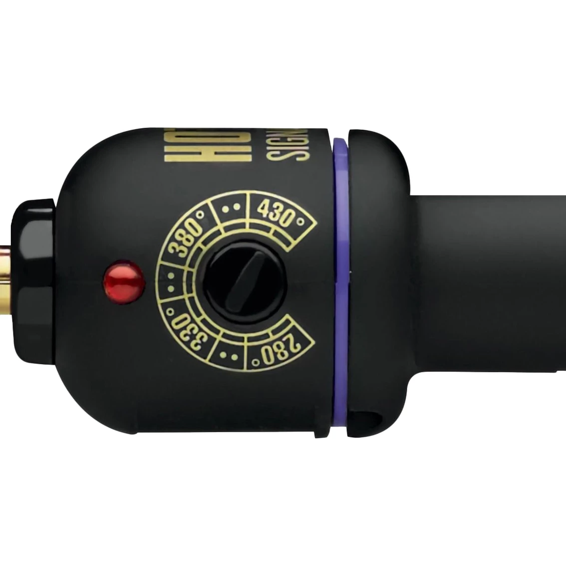 The Signature Series Gold Curling Iron Wand from Hot Tools has a gold barrel for fast styling and long-lasting results. The Pulse Technology maintains consistent temperatures on styling surface to provide a perfect curl every time. High heat reaches up to 430 degrees Fahrenheit to provide beautiful results on different hair types and textures. The soft-touch comfort grip helps with styling control. The wand has a 6-ft., tangle-free swivel cord to provide a free range of movement. Model: HTIR1576.