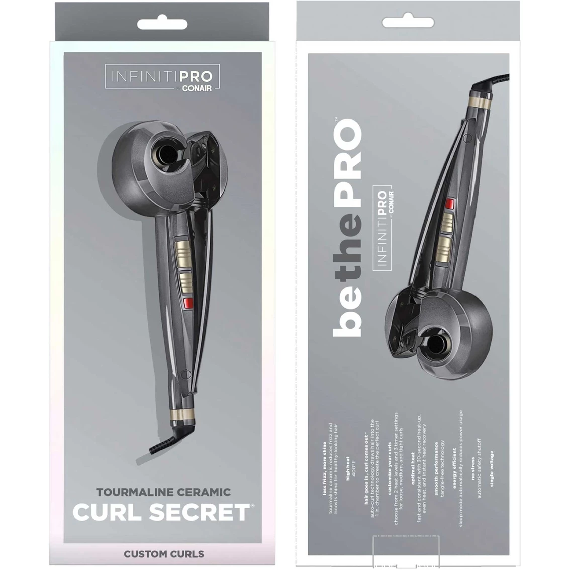 The secret is out! We’ve developed a revolutionary new way to create beautiful, shiny curls! It’s Infiniti Pro by Conair Curl Secret, and it’s the latest technology for curls that won’t quit. Hair is automatically drawn into the Tourmaline Ceramic curl chamber where it is gently held, timed and heated from all directions to effortlessly form a perfect curl. Suitable for all hair lengths and types. Tourmaline ceramic technology reduces frizz and flyaways and protects hair from damage. 400 degreesF highest heat for long-lasting curls and waves. Professional brushless motor for precision styling. Safety sensor for tangle-free curls. High performance heater for instant even heat-up and recovery. Sleep mode for energy efficient auto power reduction. 2 heat levels and 3 timer settings for loose, medium and tight curls. Auto off. Patent-pending.