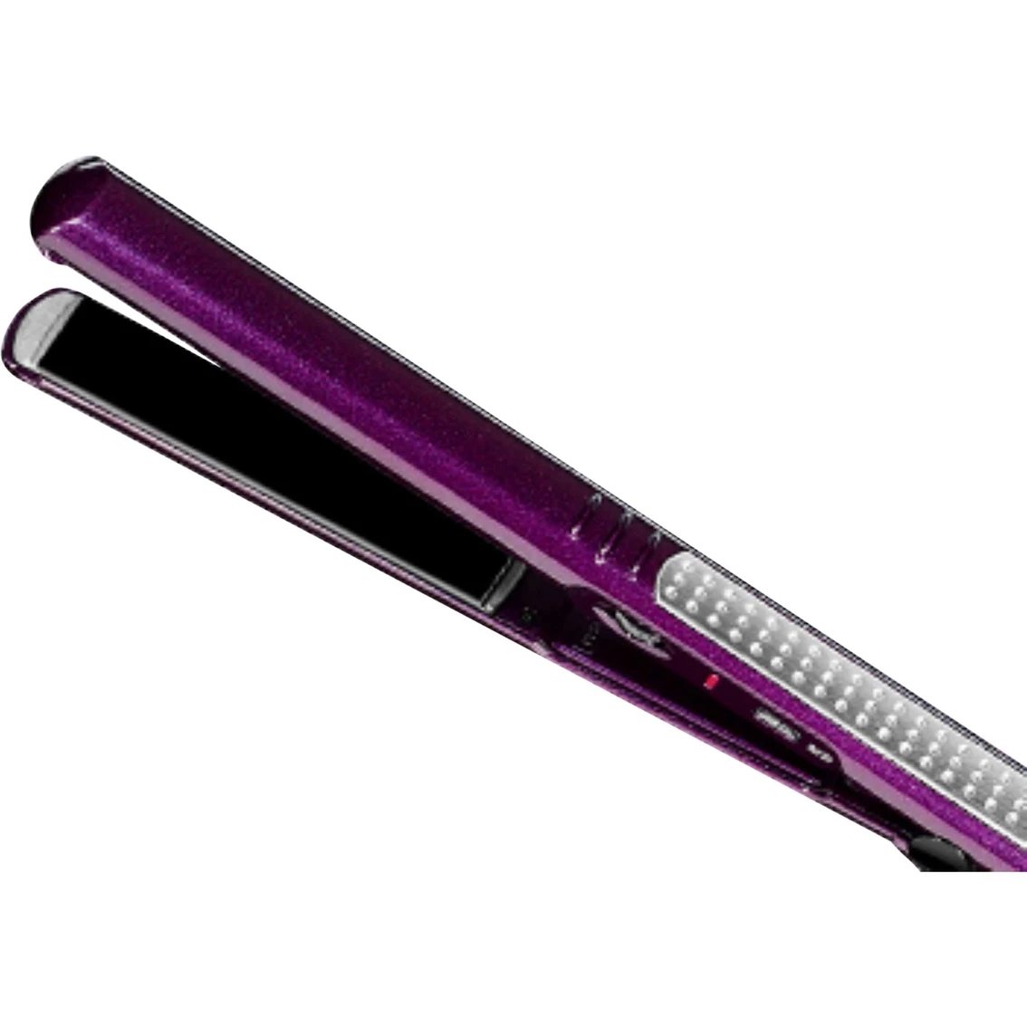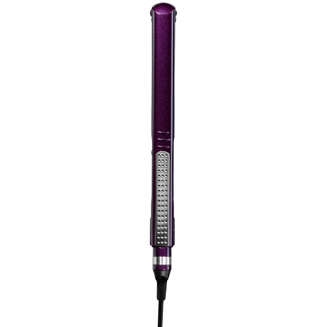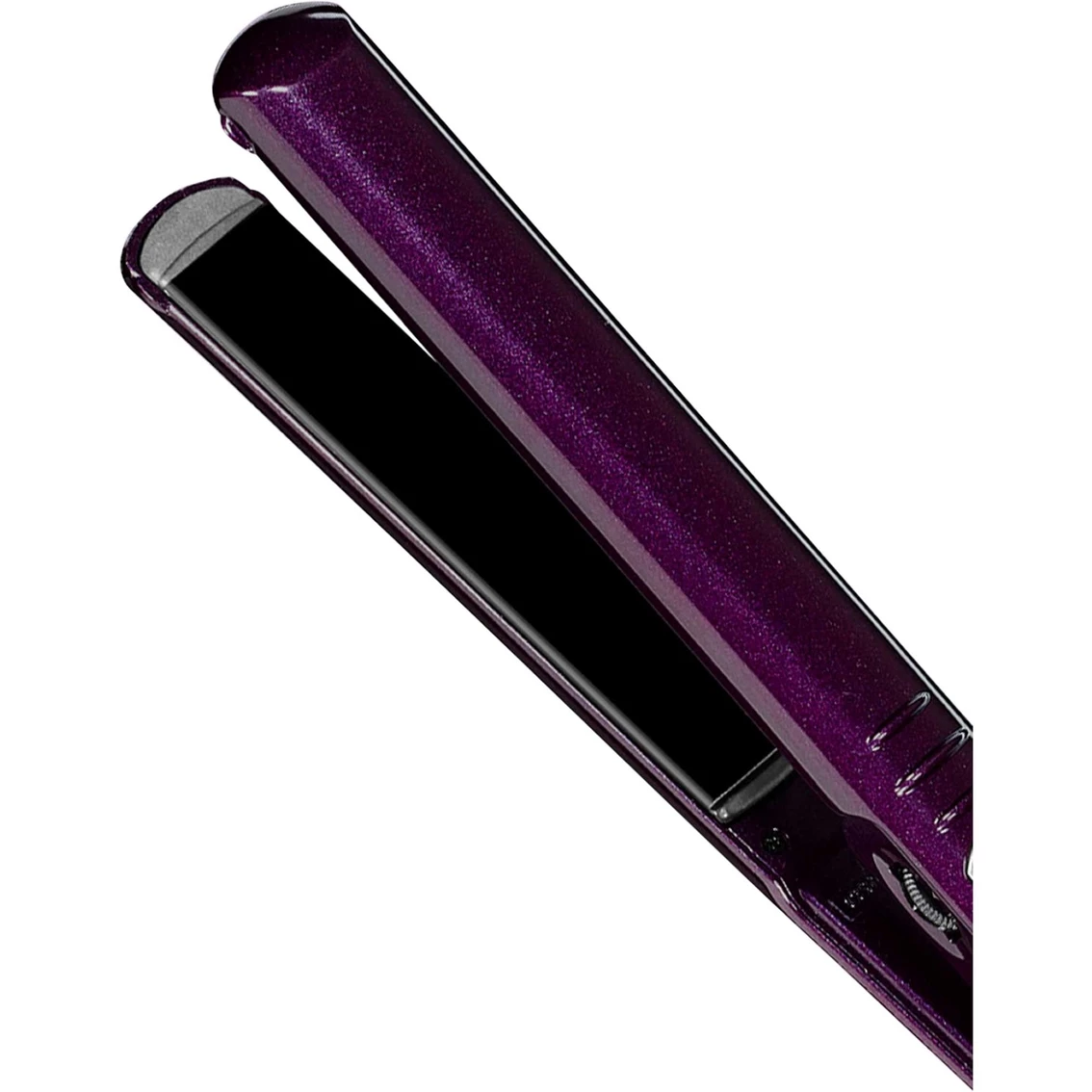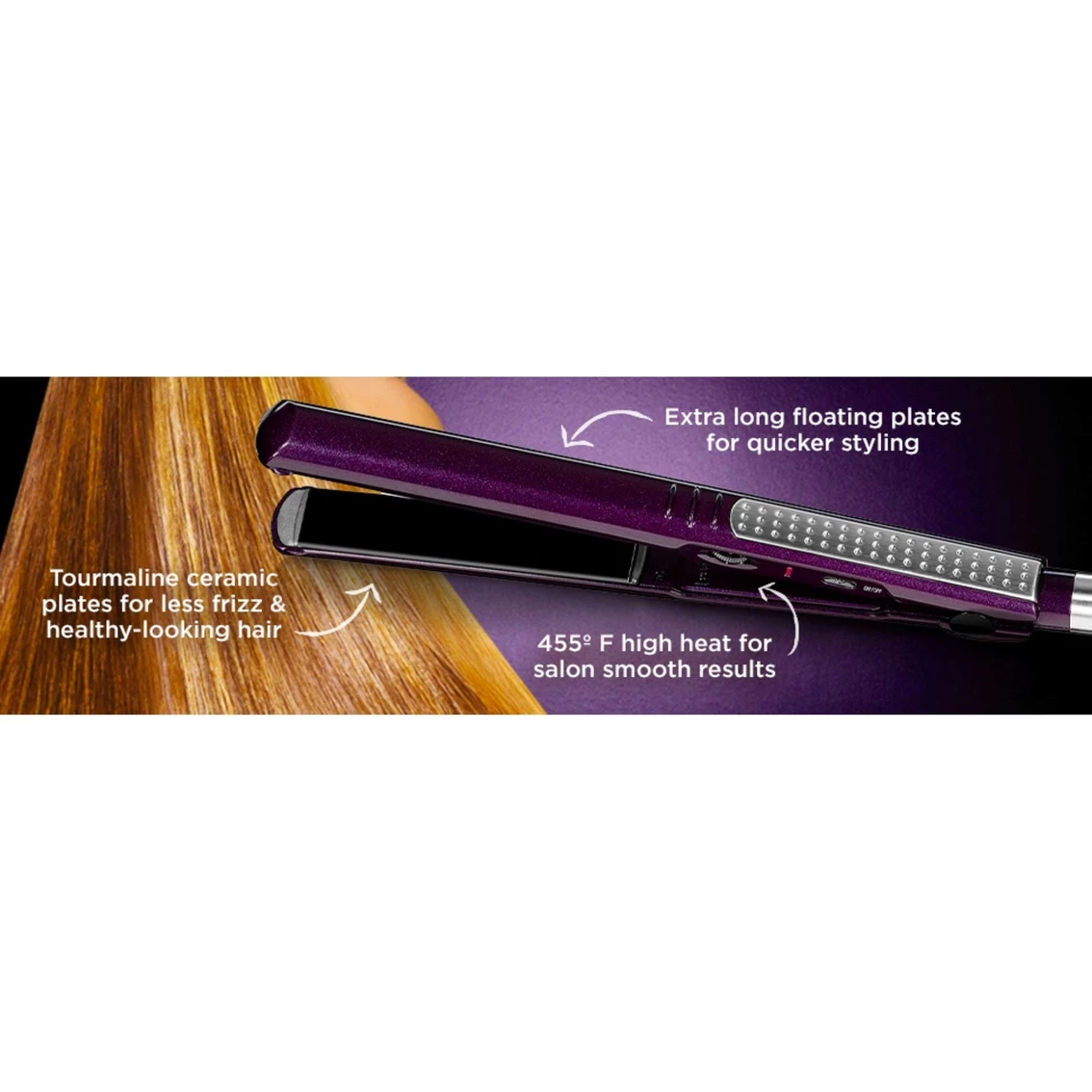 Get shiny straight, smooth styles with this salon-quality flat iron. Tourmaline ceramic-coated plates prevent static, protect hair from damage, and create shiny smooth, straight styles that last, even in humidity. Instant heat-up and recovery up to an ultra-high 455 degrees F and variable heat settings provide fast, versatile styling options. You can even add a flip with a twist of the wrist.