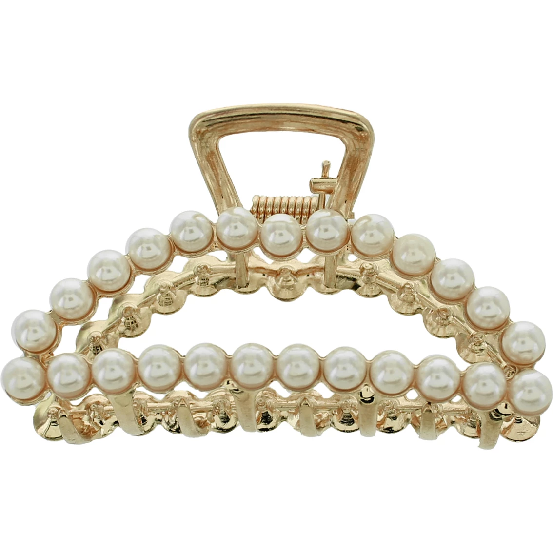 Get pretty in pearls with the Panacea Hair Pearl Claw Clip. Sweep hair up in a quick updo to show off this pearly piece. Pair with casual or chic attire to compliment this must have accessory. Model: H01203WHG2.