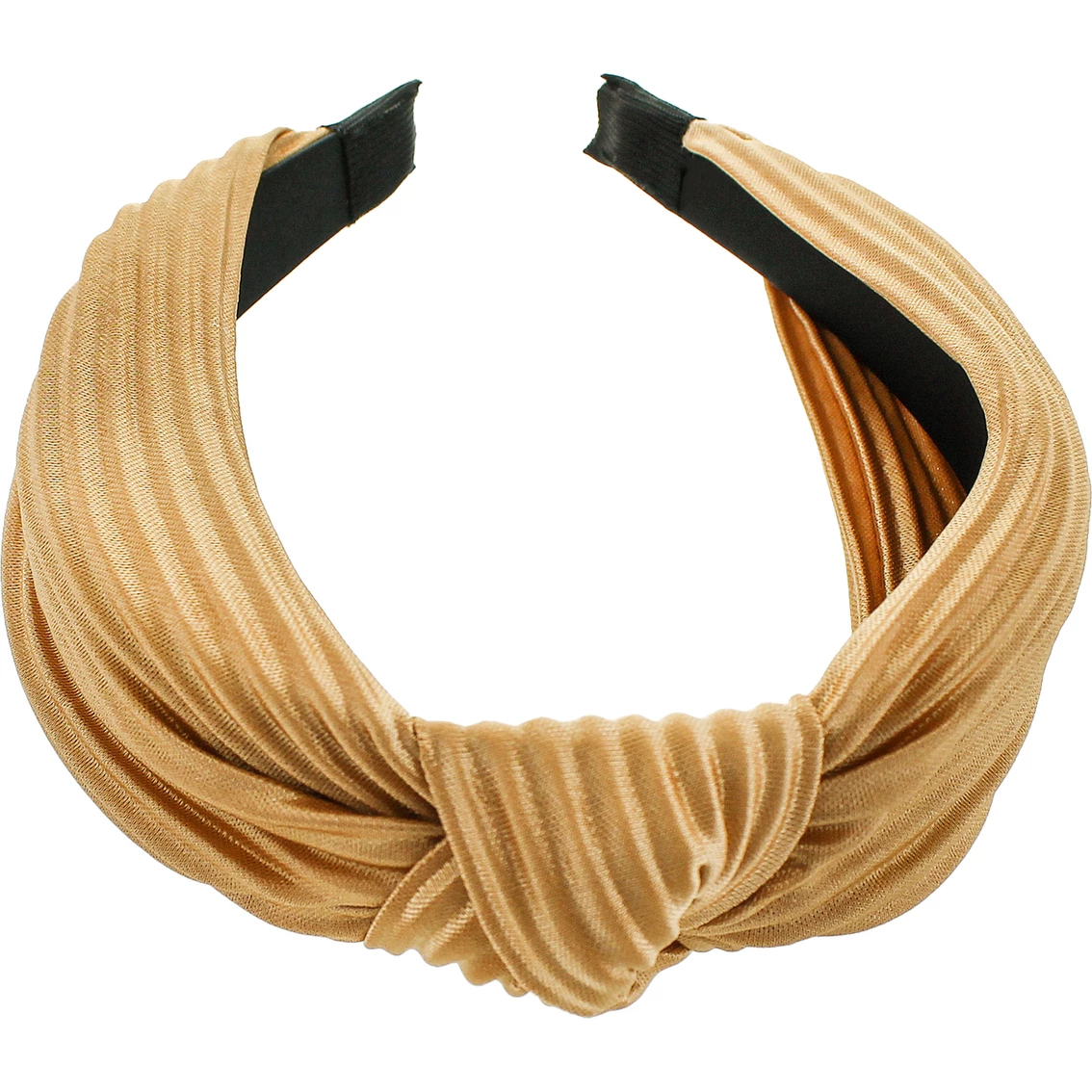 Panacea Knot Headband is a plastic headband wrapped in crinkle fabric with a knot at the top. One size fits all.