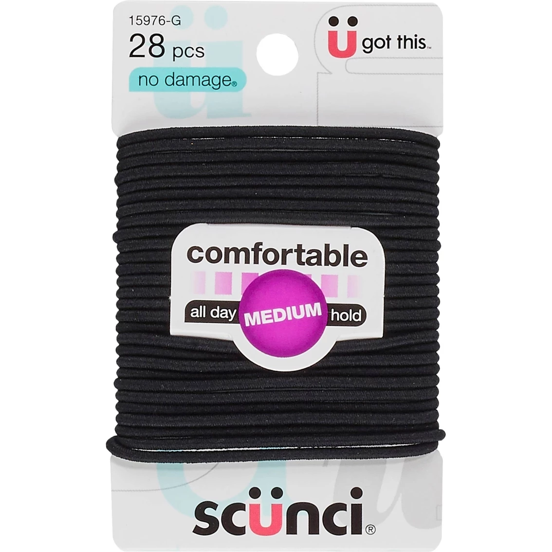The soft, metal-free elastics from scunci offer a no-damage hold while keeping ponytails tight. Whether working or working out, these elastics are easy to take with you for an instant style change. Available in 18 pk., 28 pk., or 34 pk.