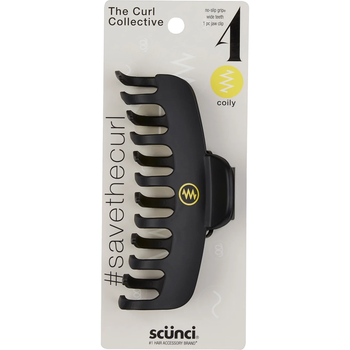 This sleek, matte jaw clip is the perfect combination of style and function. Part of the new Curl Collective line from Scunci, this jaw clip is specially designed for coily hair. The extra-widely spaced teeth and added No-Slip Grip will keep your coils in place and hold your hair gently yet firmly in place all day long.