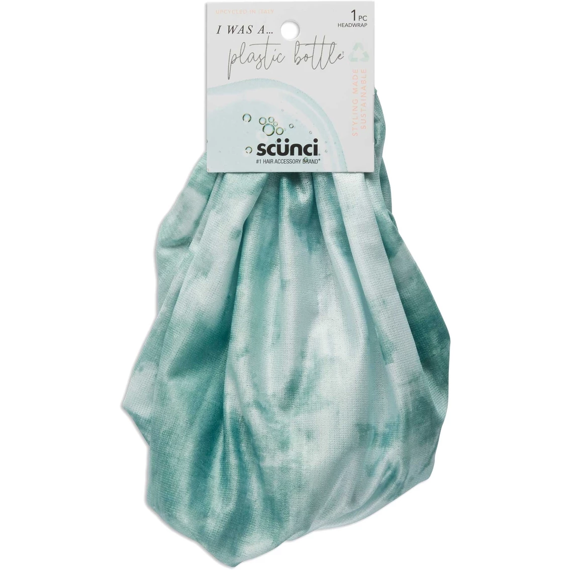 Scunci’s latest earth-friendly innovation: transforming recycled materials into fashionable and practical hair accessories for styling made sustainable! This new recycled PET headwrap in a beautiful sage green tie-dye print is made from plastic bottles and has a surprisingly soft feel. Look and feel great whenever you wear this versatile wrap that’s wide enough to cover your entire head. Scrunch it together to wear as a headwrap with your hair hanging down or along with a ponytail or bun as an extra style accent.