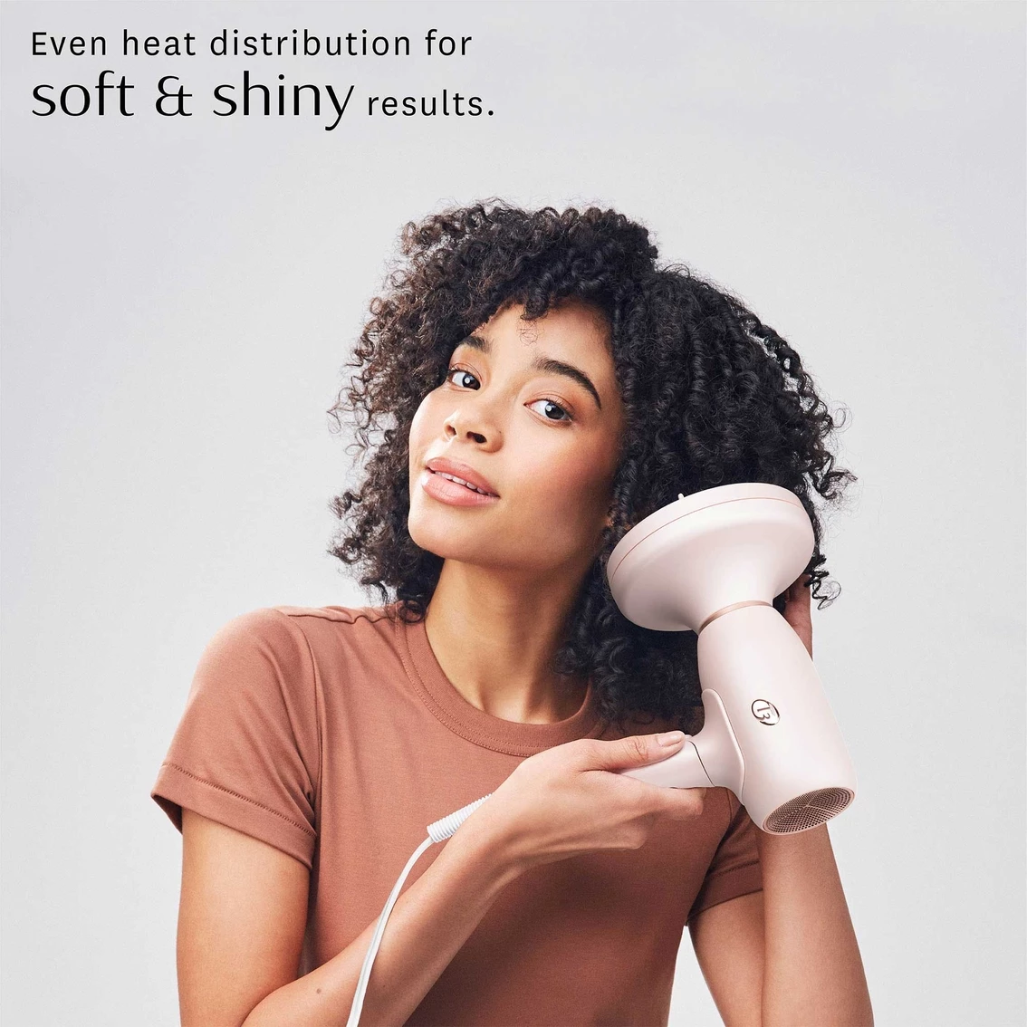 Elevate your natural texture on the go. The T3 Afar Diffuser in Satin Blush is designed to volumize, define curls and eliminate frizz for wavy, curly or coily hair. Its vented finger extensions distribute heat gently and evenly to speed up drying, while lifting and separating hair for enhanced volume and body. Compatible with the T3 Afar dryer only. Model: 76884.