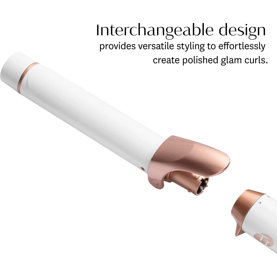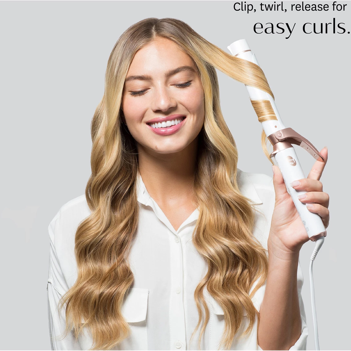 Infinite options. Looks that last. Create an endless array of styles with the interchangeable barrels from the T3 Convertible Collection. Use the 1-1/4 in. clip barrel to create full, glamorous, polished curls. When heated, custom blend ceramic surface glides smoothly to create a frizz-free shiny finish that lasts. Enhanced with intelligent Digital T3 SinglePass technology, this Convertible barrel works in just one pass. An internal microchip controls temperature fluctuation ensuring even, optimal heat. It is the start to a beautiful finish. Compatible with the Whirl Trio, Twirl Trio and the Convertible Base. Other features include: