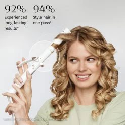 Classic and polished, with shine and staying power. Your day doesn’t quit — and neither should your curls. The T3 SinglePass Curl collection delivers long-lasting curls for every hair type and any style. Equipped with Digital T3 SinglePass Technology, the SinglePass Curl 1 in. creates classic, polished curls or waves in one smooth pass. A smart microchip monitors 5 digital heat settings to deliver the optimal temperature for all hair types and textures, while Ceramic Heater Technology provides even, consistent heat for lasting results with minimized heat exposure. A long barrel delivers easy styling for any look and all hair lengths, and a CeraGloss ceramic surface glides smoothly for shiny, frizz-free curls that last. Busy day? The SinglePass Curl 1 in. delivers curls that keep up. Model: 76540.